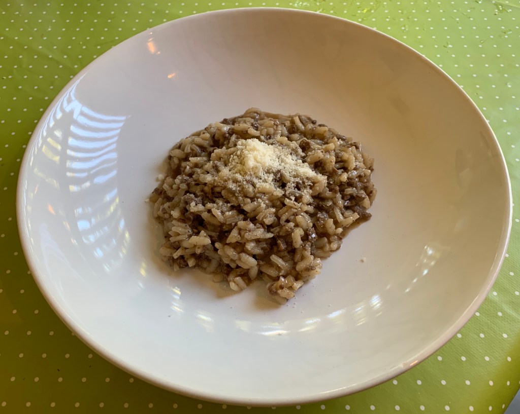 Una volta impiattato, aggiungere un po’ di parmigiano reggiano e accompagnare con del vino rosso. Ideale un rosso di Montalcino, un Chianti o un Barbera d’Asti giusto per dare qualche consiglio.