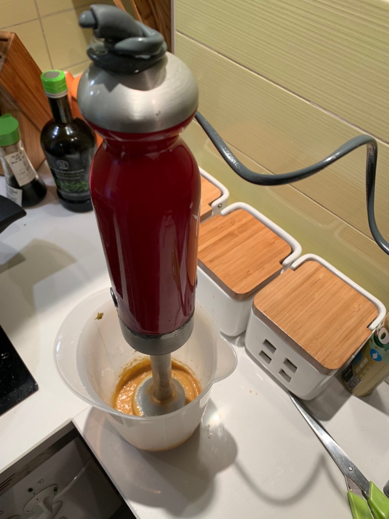 Preparare a questo punto la salsa utilizzando un minipimer e aggiungendo la carota, alcuni pezzi di cipolla un po’ di carne sminuzzata e una noce di burro.