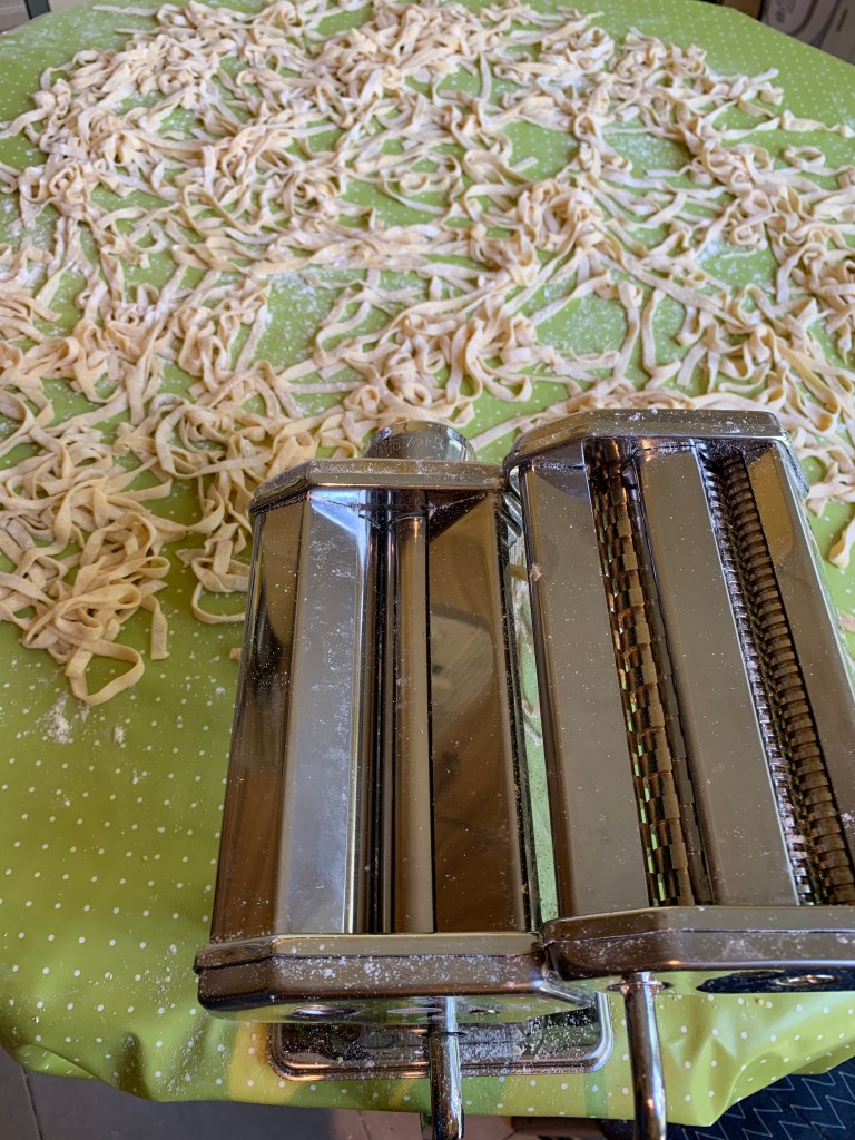 Una volta ottenute le fettuccine stenderle con u po’ di farina e lasciare seccare per almeno un’ora.