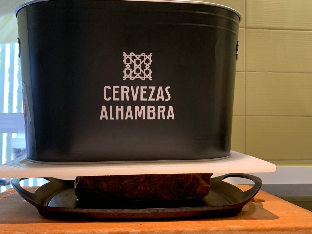 Una volta finita la cottura lasciare raffreddare con un peso e poi mettere in frigorifero per almeno 6 ore, avvolto da carta stagnola.