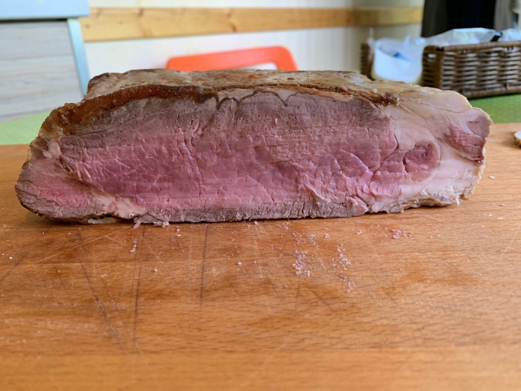 La preparazione del roastbeef é abbastanza semplice, basta tenere d’occhio la cottura e scegliere un pezzo di carne appropriata. Il macellaio di fiducia mi ha dato 800 grammi di lombo di bue giovane.
