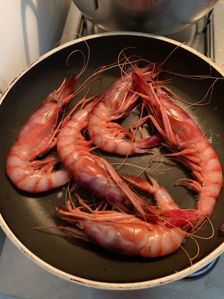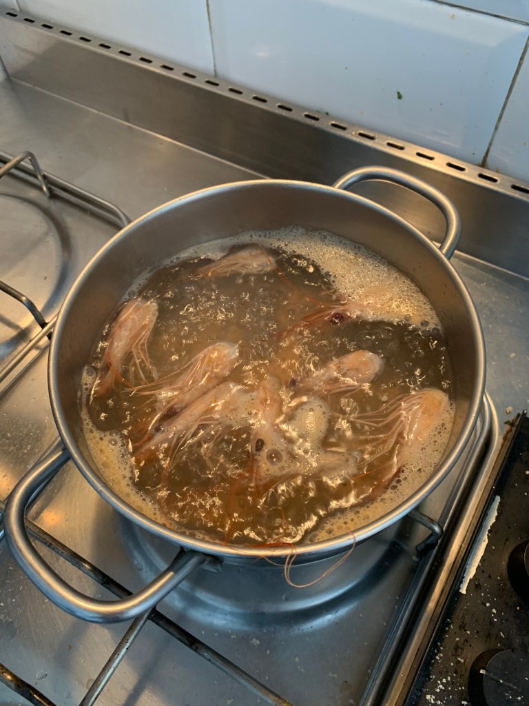 Per preparare il brodo di pesce utilizzare un litro d’acque e alcune teste di gambero. lasciare cuocere per almeno 2 minuti fino a quando l’acqua si sia ridotta leggermente.