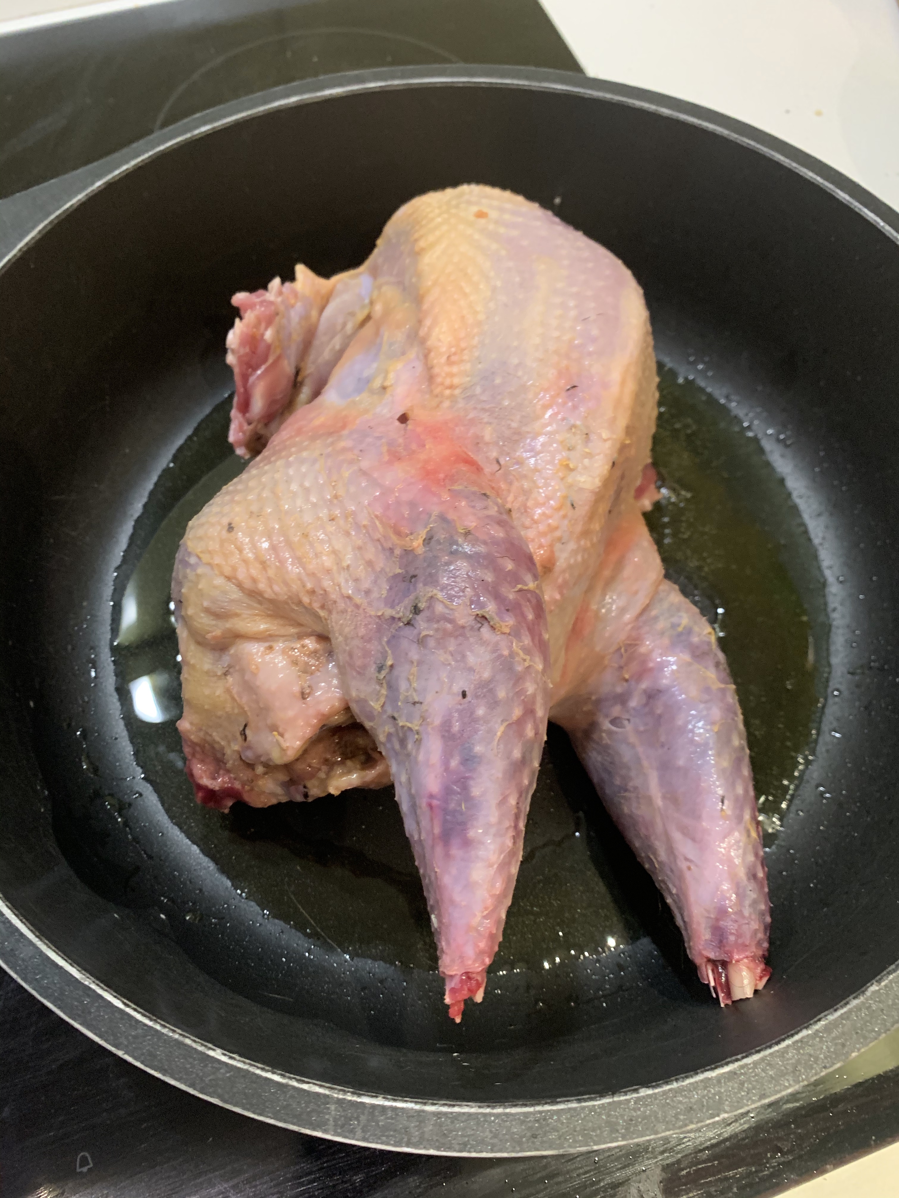 Pulire bene il fagiano togliendo i residui di piume e le interiora far scaldare un po’ d’olio d’oliva in una pentola e una volta caldo, mettere il fagiano per farlo dorare. Lasciare cuocere per alcuni minuti girando il fagiano per fargli raggiungere una doratura uniforme da ogni parte.