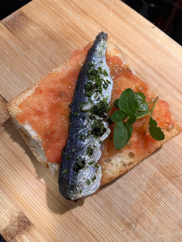 Le sardine sotto sale affumicate si possono gustare con del pane tostato,e succo di pomodoro grattuggiato.